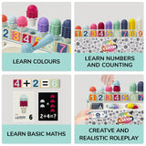 Willkommen in der Eisdiele! Vier Kugeln Himbeereis und fünf Kugeln Vanille? Kommt sofort! Lernen wird zu einem leckeren Vergnügen, wenn Kinder ihre eigene Eisdiele betreiben: Beim Spielen mit der charmanten Lernbox Eisdiele von TOPBRIGHT werden Kinder ab 2 Jahren kreativ und tauchen in die Welt eines Eisverkäufers ein, indem sie sich spannende Geschichten über die Eisdiele ausdenken. Während sie köstliche Eiskreationen servieren, entdecken sie auch Formen und Zahlen. Ob sie alleine oder mit ihren Eltern und Freunden spielen – das detaillierte Design und die vielen Accessoires wie Spielgeld und Menüs verleihen dem Spiel einen realistischen Touch. Große und kleine Kinder werden die Lernbox Eisdiele lieben. Die Kleinen entdecken Formen und sortieren Eiskugeln nach Farben. Dies hilft ihnen, die Hand-Auge-Koordination und Feinmotorik zu üben. Ältere Kinder lernen die Welt der Zahlen kennen und lösen mit den Menüs erste Mathematikaufgaben.