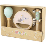 Lassen Sie Ihre Kleinen Musik entdecken mit unserem Holzmusikset mit drei Instrumenten: einem Maraca, einem Tamburin und einer Rassel mit acht Metallglocken. Das Tamburin ist komplett aus Holz gefertigt und verfügt über einen ergonomischen Griff und drei Becken für lustige Soundeffekte. Dieses Set ist für Kinder ab 18 Monaten geeignet und eignet sich perfekt, um die musikalische Kreativität zu fördern und gleichzeitig die Koordination und Feinmotorik zu stimulieren. Hergestellt aus hochwertigen und langlebigen Materialien, ist dieses Set ein ideales Geschenk für aufstrebende junge Musiker.