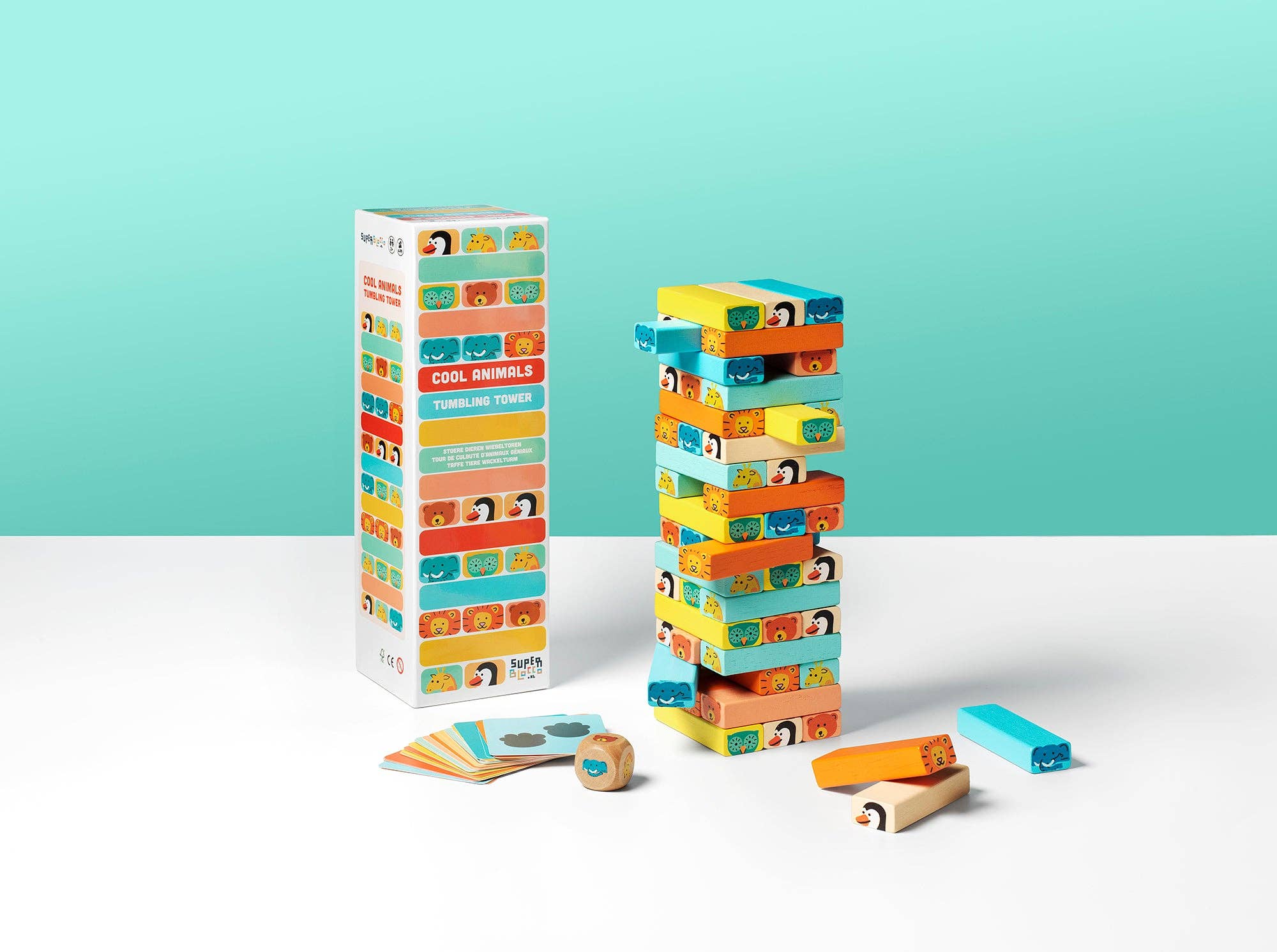 Lass den wackeligen Tier-Turm nicht umfallen! Der große Elefant, der brüllende Bär und der fröhliche Pinguin bilden zusammen mit vielen anderen Tieren einen großen Wackelturm von bis zu 17 Stockwerken. In jeder Runde nimmst du einen hölzernen Tierblock aus dem Wackelturm und legst diesen Tierblock dann vorsichtig oben auf den Turm. Der letzte Spieler, der einen Tierblock ablegt, ohne dass der Wackelturm umfällt, gewinnt das Spiel! Dieses spannende Spiel erfordert Konzentration und Balance und ist perfekt für Kinder, die eine Herausforderung lieben.
