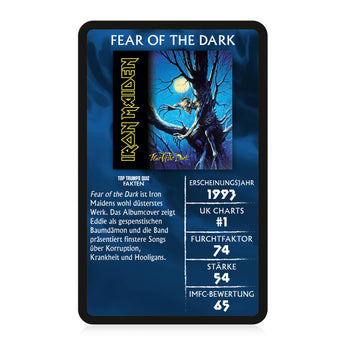 Entdecke die größten Erfolge der Band in diesem Top Trumps Collectable – von Purgatory über Maiden Japan bis hin zu Ed Hunter. Welcher Erfolg gewinnt in den Kategorien Erscheinungsjahr, UK Charts, Furchtfaktor, Stärke und IMFC-Bewertung? Finde es in einer Partie Top Trumps Collectable heraus und gewinne die Karten deines Gegners. Durch die Top Trumps Quiz Fakten auf jeder Karte kannst du außerdem dein Fanwissen auffrischen oder sogar erweitern.