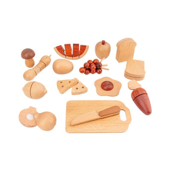 Holzlebensmitteln mit Zubehör – Lebensmittelspielzeug für fantasievolles Spielen