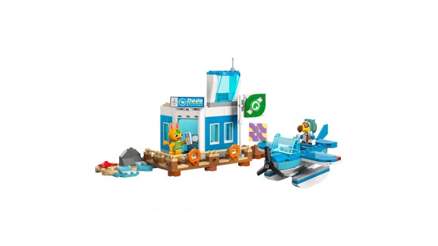 Mädchen und Jungen besteigen das Wasserflugzeug, um eine neue Insel zu erkunden, genau wie im Videospiel Animal Crossing. Mit diesem Bauset können Kinder ihre eigenen Geschichten in einer vertrauten Animal Crossing-Umgebung nachspielen. Das Flughafenspielzeug verfügt über einen Steg, der zu einem Strand führt, einen Flugsicherungsturm und ein orangefarbenes Tor zum Öffnen. Sobald Kinder das Flugzeug gebaut haben, können sie mit einem Ticket an Bord gehen. Sie können den Propeller des Wasserflugzeugs drehen und sich vorstellen, Wilbur, den Piloten, und Tangy zu einem neuen Inselziel zu schicken. Dieses Set ist in der Builder-App zu finden, in der Kinder heranzoomen, Modelle in 3D drehen und entdecken können, wie man die Flughafenflagge ändert. Animal Crossing-Spielsets geben Kindern den Spielspaß in kreative Hände. 292 Teile. Geeignet für Kinder ab 7 Jahren.