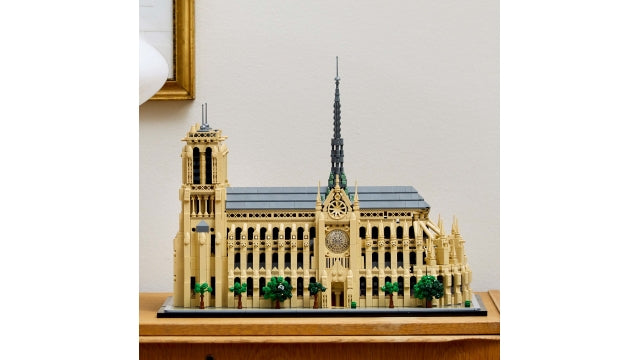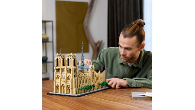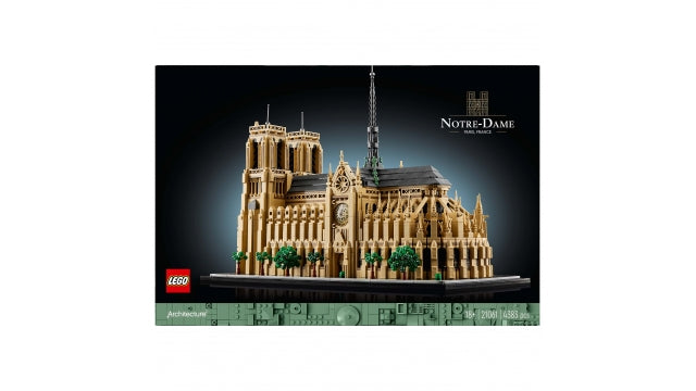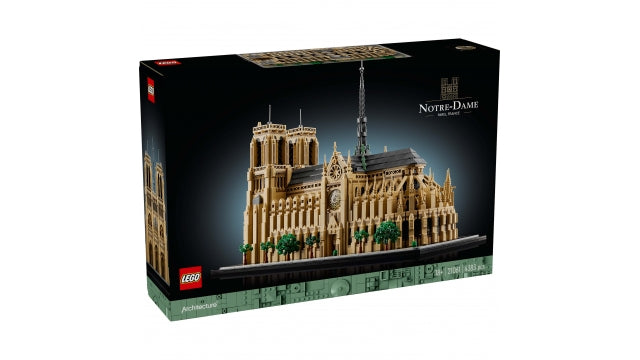 Erlebe jede Phase der Entstehung eines französischen Monuments mit dem LEGO Architecture Bauset „Notre-Dame von Paris“ für Erwachsene (21061). Dieses Architekturprojekt nimmt dich mit auf eine historische Reise von der Grundsteinlegung 1163 über die Restaurierungen des Architekten Viollet-le-Duc im 19. Jahrhundert bis hin zum majestätischen Stil von Notre-Dame vor dem Brand von 2019. Bilde authentische Details wie das geschwungene Rückgrat, die Glockentürme, die Rosettenfenster und den zentralen, von Statuen umgebenen Turm nach und füge ein Namensschild hinzu, um dieses spektakuläre Ausstellungsmodell der Kathedrale Notre-Dame zu vervollständigen. Nimm das Dach deiner Kreation ab, um die Säulen und Bögen zu bewundern, und nimm die Türme ab, um einen genaueren Blick ins Innere zu werfen. Dieses Set der LEGO Architecture Monuments Collection ist ein wunderbares LEGO Geschenk für kreative Erwachsene, die Geschichte, Architektur, Kunst, Reisen oder Frankreich lieben – und ein tolles Andenken an Paris. 4.383 Teile. Geeignet für Kinder ab 18 Jahren.