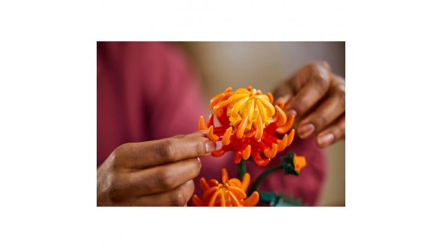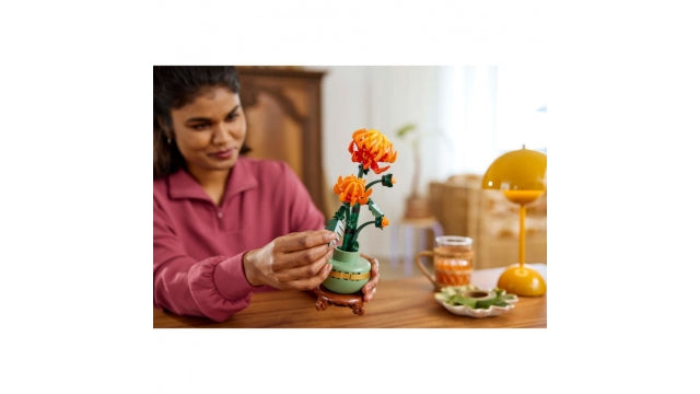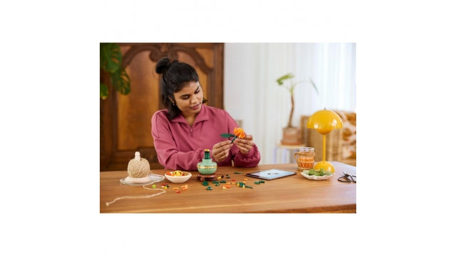 Nehmen Sie sich einen Moment Zeit für sich selbst mit diesem Lego Icons 10368 Chrysantheme Bausatz für Erwachsene. Die Chrysantheme ist ein gängiges Motiv in der traditionellen Kunst und repräsentiert den Herbst im klassischen Quartett wunderschöner Pflanzen, die als die Vier Edlen bekannt sind. Dieses detaillierte Blumenmodell mit beweglichen Blättern und Blütenblättern fängt die leuchtend orangefarbene Blume in Knospe, Blüte und in voller Blüte ein, in einem pastellgrünen Übertopf mit Goldrand und auf einem Sockel in Holzoptik. Die Chrysantheme ist einfach zusammenzubauen und eignet sich als wunderschönes florales Herzstück für das Büro oder als hübsches Wohnaccessoire. Präsentieren Sie das Lego Pflanzenmodell zusammen mit anderen Sets der Botanischen Sammlung (separat erhältlich). Schaffen Sie Raum zum Entspannen mit dieser inspirierenden Lego Reihe für Erwachsene. Eine digitale Version der Bauanleitung ist in der Builder App verfügbar. Genießen Sie ein kreatives Hobby oder machen Sie einem geliebten Menschen eine Freude mit diesen zeitlosen Lego Blumen – ein ideales Geschenk für Frauen und Männer. Maße: Die Chrysantheme in diesem Bausatz ist inklusive Übertopf und Sockel ca. 26 cm hoch, 10 cm breit und 9 cm tief. Enthält 278 Teile.