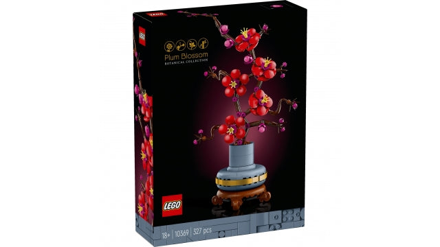 Gönnen Sie sich einen Moment Zeit für sich selbst mit dem Lego Icons 10369 Japanische Aprikose Bausatz für Erwachsene. Die Japanische Aprikose ist ein beliebtes Motiv in der traditionellen Kunst und gehört zum klassischen Quartett der wunderschönen Pflanzen, die als „Vier Edlen“ bekannt sind. Diese detailreiche Nachbildung fängt die elegante Optik der bekannten Winterblume mit ihrem holzigen Stiel und den leuchtend roten und magentafarbenen Blütenblättern ein. Die Lego Blume steht in einem pastellblauen Blumentopf mit Goldrand und einem Sockel in Holzoptik und lässt sich leicht zusammenbauen. Eine wunderschöne Pflanze als Dekoration für Büro oder Zuhause! Schaffen Sie Raum zum Entspannen mit Baumodellen aus der Botanischen Sammlung, Teil der inspirierenden Serie für Erwachsene. Eine digitale Version der Bauanleitung ist in der Builder App verfügbar. Genießen Sie Ihr kreatives Hobby oder machen Sie einem geliebten Menschen eine Freude mit diesen zeitlosen Blüten – ein ideales Geschenk für Frauen und Männer, die Bauen, LEGO Blumen und schöne Wohnaccessoires lieben. Maße: Die Japanische Aprikose in diesem Bausatz ist inklusive Übertopf und Sockel ca. 34 cm hoch, 17 cm breit und 9 cm tief. Enthält 327 Teile.