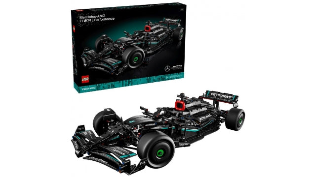 Rennfahrer nennen es die Zone. Ein Zustand höchster Konzentration, der nötig ist, um bei unglaublicher Geschwindigkeit zu fahren. Jetzt ist es Zeit, in Aktion zu treten und dieselbe Konzentration in den Bau dieses LEGO Technic Modells des Mercedes-AMG F1 W14 E Performance-Autos (42171) aus der Saison 2023 zu stecken. Erfreuen Sie sich an einem lohnenden Bauprojekt, während Sie die Details dieses Modells im Maßstab 1:8 für Erwachsene zusammensetzen. Mit seinen authentischen Farbdetails sieht dieses Modell aus jedem Blickwinkel atemberaubend aus. Feiern Sie Ihre Bauleistung, also geben Sie ihm einen besonderen Platz im Rampenlicht. Das Auto kann mit dem Lenkrad oder dem oben angebrachten Knopf gelenkt werden. Nehmen Sie die Motorhaube ab, um das Differential und den 6-Zylinder-Motor mit beweglichen Kolben freizugeben. Dieses äußerst detaillierte Modell verfügt außerdem über einen zu öffnenden Heckflügel, der vom DRS (Driving Rear Brake System) des echten Autos inspiriert ist. Dieser Mercedes F1-Autobausatz für Erwachsene ist ein großartiges Geschenk für Rennsportfans, die coole LEGO Sets lieben. 1.642 Teile. Ab 18 Jahren.