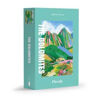 Leuchtend grüne Wiesen, bunte Blumenfelder und majestätische Gipfel, die sich im Sonnenlicht rosa färben – dieses Puzzle fängt die Schönheit der Dolomiten in einem farbenfrohen Kunstwerk ein. Beim Zusammensetzen der 1000 Teile wanderst du gedanklich durch alpine Landschaften und entdeckst kleine Details wie das Dorf mit seiner Kirche am Fuße der Berge. Ideal für alle, die Natur, Farben und eindrucksvolle Landschaftsmotive lieben. Illustriert von Rhi James aka Hebe Studio.