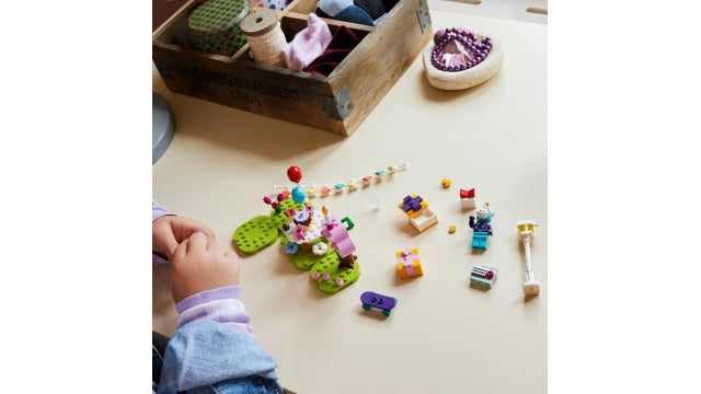 Dieses anpassbare Spielzeug ist vollgepackt mit niedlichen Accessoires, die Kinder aus dem Videospiel kennen, und sorgt für endlosen Spielspaß. Kinder können eine Party für Julian, das Pferd, geben, das Mädchen und Jungen aus dem Videospiel kennen. Sie können ihm ein Geschenk mit einem Mikrofon und einer Glockenmünze machen und Cupcakes verteilen, während Julian die Kerze auf seiner Geburtstagstorte ausbläst. Wenn die Feierlichkeiten vorbei sind, können Kinder die Szene verändern, indem sie die Grundplatten verschieben und die Spielzeugballons, Luftschlangen und Accessoires neu anordnen. Lassen Sie Kinder gerne Geschichten aus dem Animal Crossing-Videospiel bauen. Dieses modulare Set ist ein tolles Geburtstagsgeschenk für Julian-Fans und kann für endlose Spielmöglichkeiten mit anderen Animal Crossing-Bausets kombiniert werden. 170 Teile. Geeignet für Kinder ab 6 Jahren.